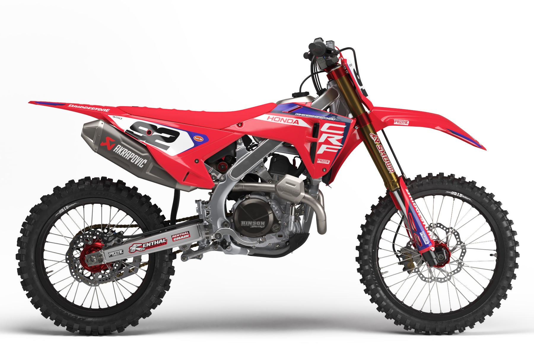 Here at Prime Design Graphics, our full kits are pre designed so that we can drop your name and number into the design super fast, getting your order out to you as fast as possible. Our Full Graphics Kits include graphics for the tank shrouds / radiators, rear guard, front guard, fork guards, swingarms, front number plate / headlight & the side number plates / airbox covers.