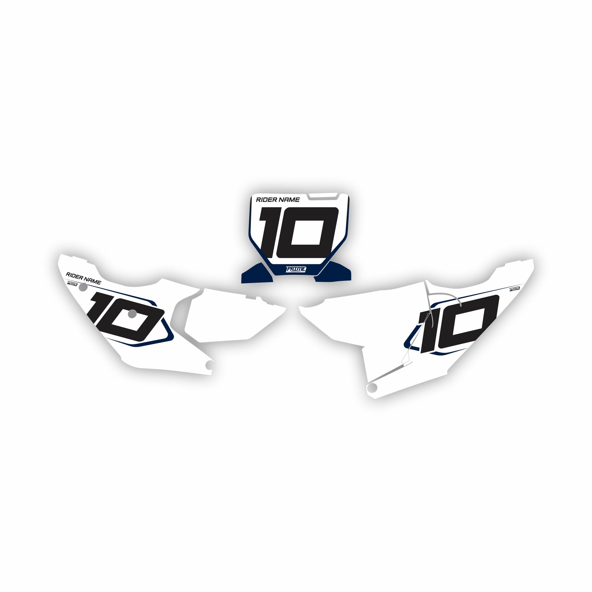 Here at Prime Design Graphics, our race number are pre designed so that we can drop your name and number into the design super fast, getting your order out to you as fast as possible. Our Race numbers include graphics for the front number plate / headlight & the side number plates / airbox covers.
