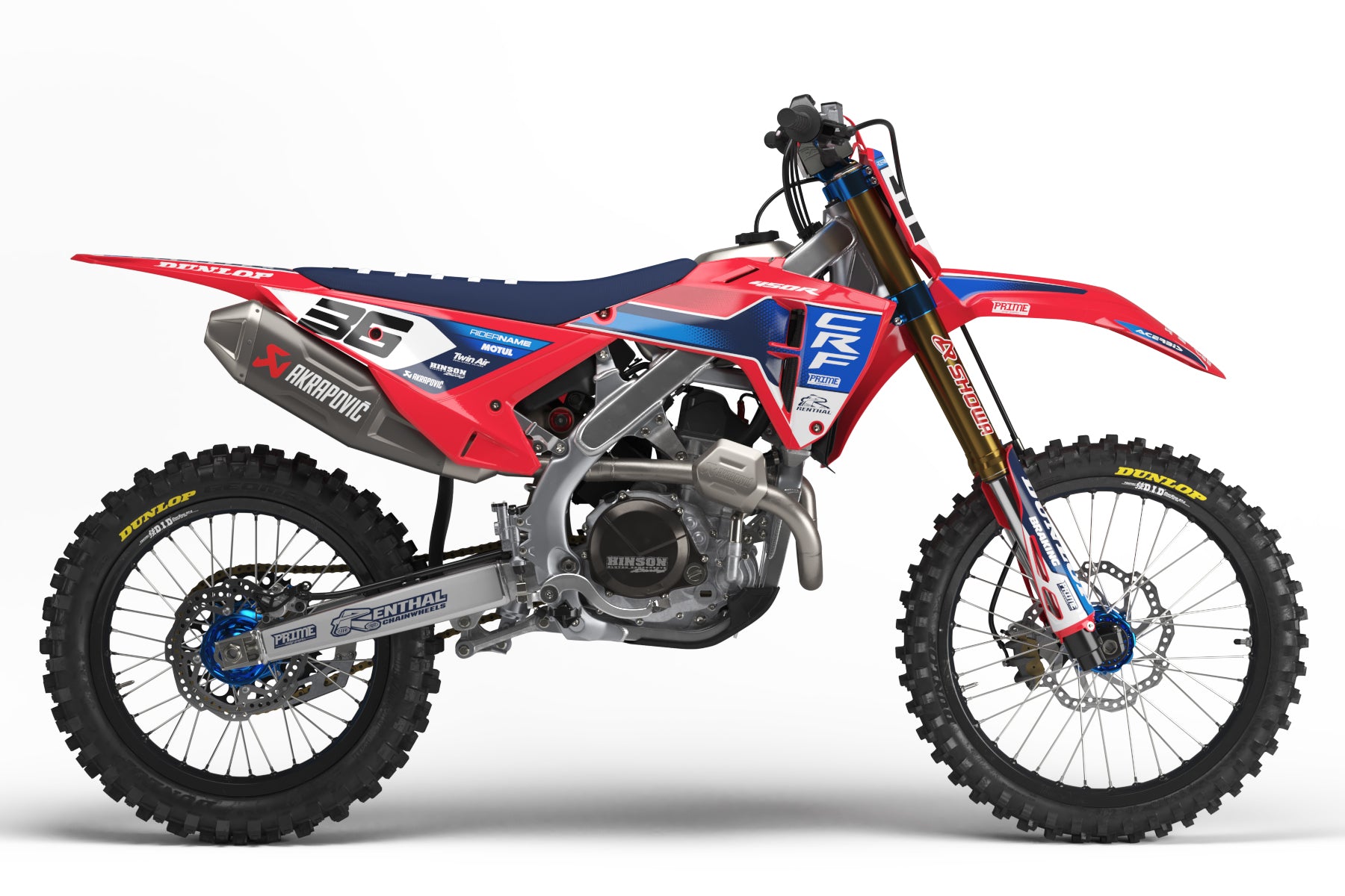 Here at Prime Design Graphics, our full kits are pre designed so that we can drop your name and number into the design super fast, getting your order out to you as fast as possible. Our Full Graphics Kits include graphics for the tank shrouds / radiators, rear guard, front guard, fork guards, swingarms, front number plate / headlight & the side number plates / airbox covers.
