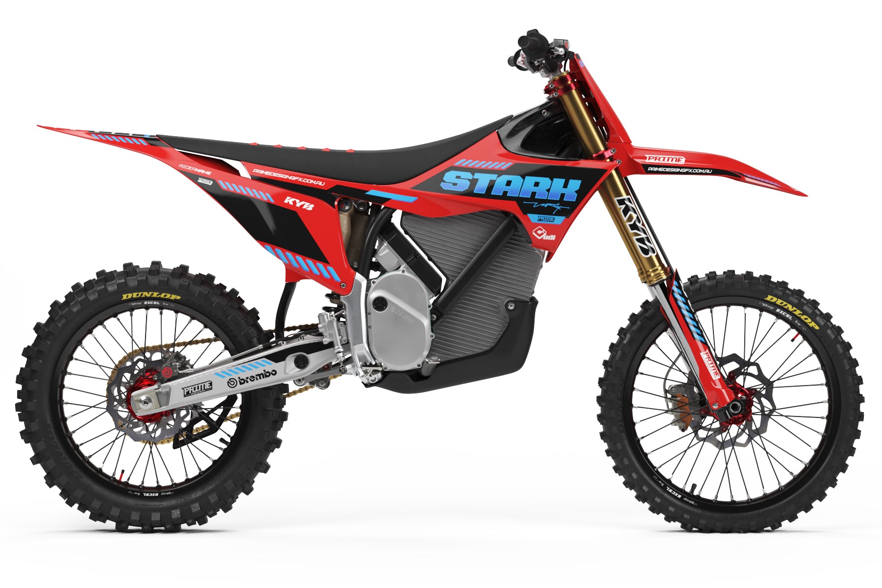 Here at Prime Design Graphics, our full kits are pre designed so that we can drop your name and number into the design super fast, getting your order out to you as fast as possible. Our Full Graphics Kits include graphics for the tank shrouds / radiators, rear guard, front guard, fork guards, swingarms, front number plate / headlight & the side number plates / airbox covers.