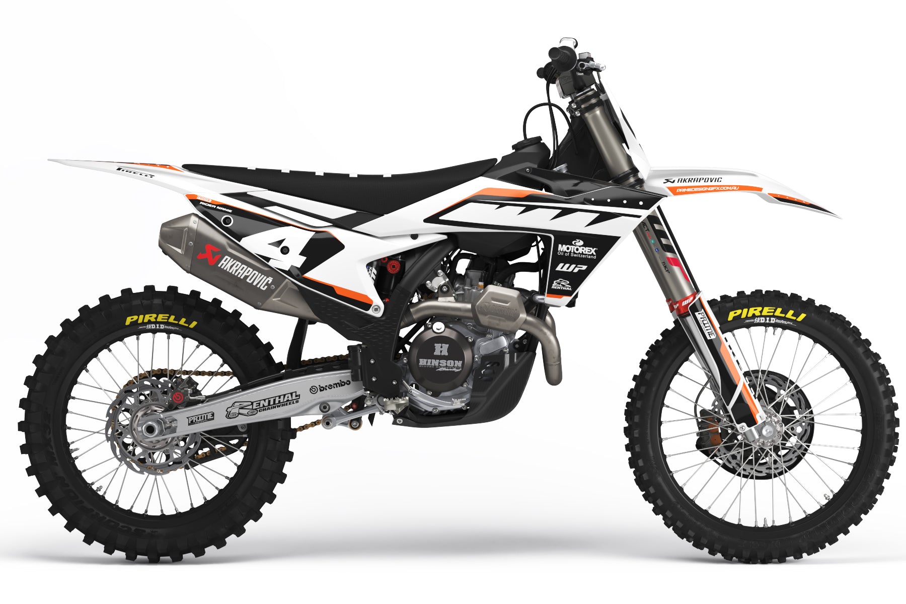 Here at Prime Design Graphics, our full kits are pre designed so that we can drop your name and number into the design super fast, getting your order out to you as fast as possible. Our Full Graphics Kits include graphics for the tank shrouds / radiators, rear guard, front guard, fork guards, swingarms, front number plate / headlight & the side number plates / airbox covers.