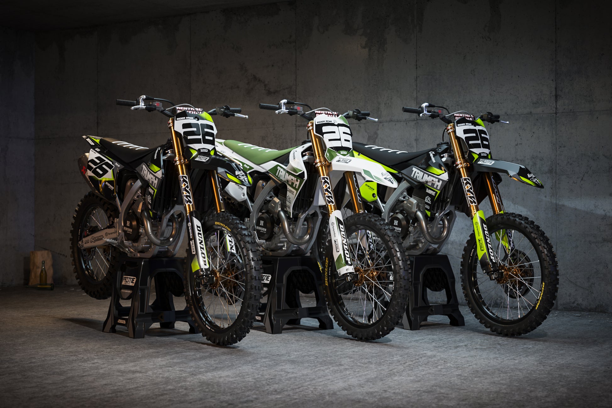 Here at Prime Design Graphics, our full kits are pre designed so that we can drop your name and number into the design super fast, getting your order out to you as fast as possible. Our Full Graphics Kits include graphics for the tank shrouds / radiators, rear guard, front guard, fork guards, swingarms, front number plate / headlight & the side number plates / airbox covers.